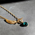 ファルカをイメージした、前留め式のネックレスです。 お好みで留め具の部分をサイドに回してもお使い頂けるデザインです。(画像2枚目) ドイツ製のヴィンテージガラスをメインに使用しています。 3種のチェーン、翼チャームは変色のしにくいk16gpのものを使用しました。 撮影状況やお使いの端末の設定等により、画像と実物の色合い等に違いが出る場合があります。 ご不明な点はお気軽にお問い合わせください。 チェーンの長さ:約50cm ガラスペンダントトップの大きさ:約1.8cm 金具の色:ゴールド *ご注意* *素人によるハンドメイド作品です。 *ハンドメイド作品ですので、同じ品を複数ご購入頂いた場合でも少しずつ個体差がある場合があります。 *金属を使用しております。金属アレルギーの方のご着用はご注意ください。 *一つ一つ丁寧に作成しておりますが、既製品と比べて強度や完成度が劣る場合がございます。ご了承の上お取り扱いにはご注意ください。 *水濡れや直射日光の当たる場所に放置しますと劣化が早まる恐れがありますのでご注意ください。