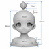 【3Dプリント用】二次元・大眼萌え少女ヘッド|完全無髪・グレーモデル|浮遊アクセサリー付き
