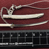 全長:73.5mm 刃渡:50mm アクリルケース付き 刀身:鋼材削り出し パーツ:鉄、真鍮、アルミ 柄:羊革 鞘:(中芯)ポリプロピレン樹脂、(外皮)豚革 日本刀を模した金属製の本格派ストラップです。 同一の規格のものが無い一部廃材を使用した手作り生産の為、工程上刀身に細かい傷などがありますが、またそれも味わいのある一点モノとなります。 日本刀はとても魅力的ですが、価格やサイズの問題で敷居が高くなかなか手を出し辛いもの。 そんな日本刀を身近に感じられるように小さなストラップにしました。 金具を外してミニドールの持ち物にもできます。 守り刀としての御守りやちょっとした贈り物、 外国人の方へのお土産などにもオススメです。 ※注意事項※ 刃物の分類となりますので取扱いには十分にご注意ください。 使用方法が正当・不当問わず如何なる重大な事故、事件、トラブルが発生した場合においても当サークルは責任は負いません。自己責任の上で管理をお願い致します。 1)鑑賞用ですが刃物の分類となります、先端が鋭くなっておりますので怪我やトラブルにご注意下さい。 2)刃の部分は錆びに弱い作りとなっておりますので、濡らしたり素手で触った後は布などで水分や指紋はよく拭き取って下さい。 また、抜刀時に強い力を掛けますと鎖部分が千切れ、破損や怪我の原因になりますので、抜刀や納刀はゆっくり行って下さい。 3)鞄やベルトなどの外側に付けることを想定しております、スマートフォンなど、ポケットに入れるものには付けないで下さい、怪我や画面に傷をつける恐れがあります。 4)航空機内や公共施設の立ち入りにおいて、危険物として持ち込みを制限される可能性があります。十分ご注意下さい。 5)銃刀法の規制対象(刃渡り55mm)以下のサイズではありますが、所持の状況(袖の下に隠し持つなどの怪しまれるような携帯方法)によっては軽犯罪法が適用される可能性があります