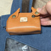 年末年始感謝セール! 本革のキーホルダーケースです。 ミニバック型のキーケースとして作りました。 取っ手の片側だけボタンで取り外しが出来るので、トートバッグやショルダーバッグに取り付ける事が出来ます。 欠点は、中の鍵が取り出しにくい為、キーケースとしてはちょっと難ありです。 なので、推し活等で推しのキーホルダーを入れておくといいかなと思います。 本体サイズ 10cm×9.5cm(取っ手含む)×5.5cm 色は写真を参考にしてください。 詳しく知りたい方はメッセージください。 ハンドメイド商品の為、写真と多少の異なる場合がります。 (押し印の角度や位置など) また、本革特有の自然由来の傷やシワが 多少ありますのでご了承ください。