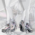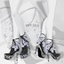ラメ質感のオーロラカラーをメインとした個性的なディティールのピンヒールショートブーツです! ヒール部分にはハート、星、リボンのチャームをつけてみました。 ドレッシーなスタイルにはもちろん、装飾を取り外してシンプルなブーツとして普段使いにも◎ かなり厚底で質感的にも見栄えがすると思うので、ショーやイベントなど舞台に立たれる方にもオススメです! ***** 【形式】 形式: .vroidcustomitem(VRoidStudio用) 【使い方】 VRoidStudioアプリの左上三本線の「カスタムアイテムをインポート」から、DLした.vroidcustomitemをインポートして着用してください。 【内容物】 ■Aurora Short Boots [カテゴリ]靴 [型紙]ピンヒール×2枚、ロングブーツ×1枚 [本体カラー]aurora1/aurora2/aurora3/silver/black [ソール部分カラー]silver/black [足首リボンカラー]silver/black [足首レースカラー]white/black [ヒール&チャームカラー]silver [仕様]テクスチャの表示/非表示の切り替えによりカラー変更と、ソール(シルバー)、足首のリボンとレース、ヒールのチャームを切り替えまたはつけ外しができます。 ■Aurora Short Boots(simple) [カテゴリ]靴 [型紙]ピンヒール×1枚 [仕様]↑のブーツのリボンやレース、チャームの型紙を削除したシンプルver.です。 【ご注意】 ※足のサイズが小さめ or 大きめのアバターですと、足首のレースとブーツの大きさのバランスが崩れることがあります。 あらかじめご了承ください。 着用写真投稿用タグ… #SquareSuikaShop