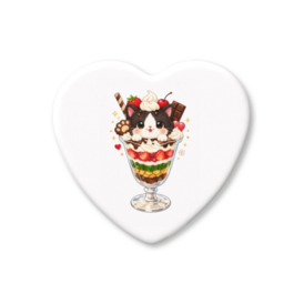 ハチワレ猫ちゃんパフェずっきゅんハートバッジ