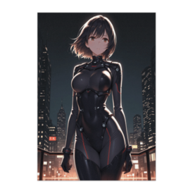 ポスター - B2この商品はpixivFACTORYで作られた商品です。サンプル画像は完成イメージのため、実物と異なる場合があります。 静かな夜の都市に佇む、近未来のサイバーガーディアン。 無機質なスーツと柔らかな表情のコントラストが、 クールさと人間らしさを同時に感じさせる一枚です。 SF・近未来・サイバーパンク系の空間演出におすすめ。 お部屋のアクセントとしても映えるポスター作品です。