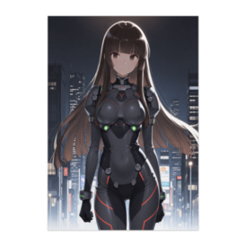 ポスター - B2この商品はpixivFACTORYで作られた商品です。サンプル画像は完成イメージのため、実物と異なる場合があります。 都会の光に包まれながら、静かに立つ近未来の女性。 正面構図がもたらす緊張感と、落ち着いた表情が印象的な一枚です。 洗練されたSF世界観を楽しみたい方におすすめのポスター作品です。
