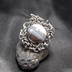 作品シリーズ:planet 用途:ペンダント等 素材: sus316L(サージカルステンレス) 天然石:コモンオパール 天然石色:水色・灰色・白等のストライプ模様 天然石サイズ:±14mm ●作品の制作に関して 天然石の大きさに合わせ、円形のサージカルステンレス(マルカン)を1つ1つ何十個も手作業で複雑に編み上げていくチェインメイルと呼ばれる技法を使い制作されたアクセサリーです。 ●天然石に関して 特徴的なストライプ模様が綺麗なコモンオパールを使ったペンダントトップ。 オパールは水が大地を流れ下るにつれ、砂岩からシリカを豊富に含む溶液を、自然の断層や化石の分解によってできた亀裂や空隙に入り込み、水分が蒸発するとシリカの蓄積物が残ります。 これらの蓄積物がオパールとなります。 この特徴的なストライプ模様はその際に形成され、1㎝のオパールが作られるまでに約500万年かかると言われます。 途方もない年月で形成され、同じものは1つとして無い自然のアートとも呼べる天然石です。 オパールには大きく分けて2つあり、遊色効果が見られるプレシャスオパールと遊色効果が見られないコモンオパールがあり、作品はコモンオパールに分類される天然石でコモンオパールの中でも水色や青色の色彩を持つオパールは数が少ないです。 ストーンワード ・幸運を呼び込む ・人生を楽しむための希望を与える ・内なる才能の開花 ・心の安定 ・創造と直観力を養う ※天然石説明にて使用しております説明等は古来よりの言い伝え等に基づき記載させていただいております。 効果等と保証するものではございません。 ※商品は手作業で仕上げた1点限りの商品となっておりますますので、写真撮影された商品が届きますが、モニター等により若干色合いや質感が異なる場合がございます。 また、作品の性質上、傷やクラック等がある場合がございます。