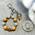 マスタードカラーを中心に、 アイボリーやブラウン系のビーズを組み合わせた リング型のハンドメイドストラップです。 丸みのあるビーズと縦ライン模様のビーズを交互に配置し、 シンプルながらもリズム感のあるデザインに仕上げました。 落ち着いた色合いなので、 バッグやポーチなどにも合わせやすい雰囲気です。 ナスカン付きで、 鍵・バッグ・ポーチ・スマホストラップなど さまざまな用途でお使いいただけます。 小さな透明ビーズのチャームが、 さりげないアクセントになっています。 ひとつひとつ手作業で制作しているため、 色味や配置にわずかな個体差があります。 ハンドメイド作品ならではの風合いとして お楽しみください。 サイズ:写真の500円玉比較をご参照ください 素材:アクリルビーズ、チャーム、金具 など ※ハンドメイド品のため、ビーズ配置や色味に個体差があります。 商品番号:B-008