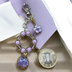 透明感あふれるパープルを基調に、上品な煌めきを詰め込んだハンドメイドキーホルダーです。 サークル状に繋いだビーズの先で揺れるのは、小さな宇宙を閉じ込めたようなガラスドーム。光の角度によって中のホログラムがキラキラと輝きます。 アクセントに添えた小さなお花チャームが、可憐な印象をプラスしてくれます。 日常使いのポーチやバッグはもちろん、鍵に付けても邪魔にならない程よいサイズ感。 紫やラベンダーカラーがお好きな方、大切な方へのプチギフトにもいかがでしょうか。 サイズ:写真の500円玉比較をご参照ください 素材:ビーズ、チャーム、金具 など ※ハンドメイド品のため、ビーズ配置や色味に個体差があります。 商品番号:B-022