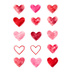 【ハート素材】手描き水彩ハート15点セット|赤・ピンク|ラフ・ペイント・スケッチ風|透過PNG