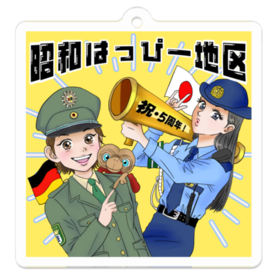 アクリルキーホルダー - 50 x 50 (mm)福とメイのお気に入りデザインをキーホルダーにしましたー! 福は昭和の日本の婦人警官、メイは80年代のベルリン警察の制服です!