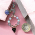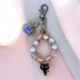淡いピンクと乳白色のビーズを使った、やさしい色合いのハンドメイドストラップです。