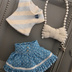 ご覧いただきありがとうございます 11cmサイズのお洋服セットです フレンチスリーブのTシャツ ミニスカート リボン型ショルダー(中に物は入れられません)の3点セットです オビツ11ボディで着用可能です ねんどろいどどーるボディでも大丈夫だと思います お洒落な斜めストライプとピンドットの組み合わせ 胸元のちいさな星もポイントです リボンショルダーにも星モチーフをつけています 軽やかで可愛らしいお出かけコーデです♪