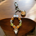 キラキラと光を通す、シャボン玉のようなビーズを繋いだハンドメイドのストラップです。 足元には、ちょこんとお座りした白猫のチャーム。 光の当たり方でオレンジやイエローに表情を変えるビーズが、まるでお散歩中の陽だまりのように手元を彩ります。