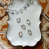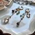 🐉キバナ ※ 再販分はツイストしたカットのスモーキークォーツをオニキス(黒瑪瑙)に変更して作成予定です。 ご了承の上、ご検討くださいませ。 25年はキダ界含め情報を追う時間がなく、 すっかり界隈に疎くなってしまっていたところに 友人から新しい衣装のキバナくんの存在を教えてもらいあまりのかっこよさに勢いのまま走り抜けた結果です。。 25年のお正月に登場したらしく、、! 一年越しに狂っているわたしは、、!((ウッ キバナの相棒はもちろんジェラルドンが一番に思い起こされるのですが 相棒達の中でもなぜかサダイジャが凄く好きだったんですよね… 自分でもスナヘビから育てたくらい… フライゴン、ヌメルゴン、と他にも魅力的な相棒たちがいるのに なんでだろう?とずっと思っていたのですがアルコス姿を見て納得しました。 キバナを象徴する[砂嵐]というワードと結びついたポケモンだったからかもしれません。 砂嵐を操るユニフォーム姿であると考えたときに、ただのありふれた石でこの姿をお作りしたく無いと考えました。 どんな砂嵐を思わせる石にしようかと色々と考えていた中、 奇跡的に出会えたのが[ブラウン]のルチルクォーツです。 ルチルは透明な水晶の中針状の結晶が入り込んで出来る水晶です。 黄金色の結晶が中に閉じ込められていることが多いのですが 希少なブラウン色の結晶が中に閉じ込められているルチルと出会うことが出来ました。 目にした瞬間に、これ以外無いと思いました。 水晶部分が濁ったルチルも多い中で透明感も申し分なく 中の針状の結晶が無尽に走るさまに、これぞ求めていた砂嵐だと感激しました。 縦横無尽に奔る砂嵐をブラウンルチルクォーツに。 石の礫はマルチカラージルコンを。 サダイジャのグリーンとキバナの特徴的な瞳の色は青みのあるグリーンが特徴のコロンビア産のエメラルドへ、 いつもより露出の多い肌は美しい褐色のスモーキークォーツへ。※再販分はオニキス(黒瑪瑙)になります。艶やかなオニキスはキバナくんの黒髪を思わせます。 すべての石に意味を込めました。 キバナのアルコスのすらりとした忍者の姿とサダイジャの蛇モチーフ感を大切に長いチェーン状のチャームでお作りしました。 飛び交う砂嵐となるようにデザインはアシンメトリーにしています。 ベースがブラウン・ブラック系なので、以前に販売をしていた他の石とも相性はいいように思います。 お好きにお着換えして楽しんでいただけたら幸いです。 ※画像8枚目 チャームはそれぞれひとつずつでもご使用いただけるようにデザインしていますが こんな風にして欲しいなどリクエストがありましたらお気軽にお申し付けください☺ 🌟こちらはチャームのみの販売です 着用パーツが必要な方はこちら フープイヤリング https://sparkle2411.booth.pm/items/4194111 フープピアス https://sparkle2411.booth.pm/items/4194100 使用石: ブラウンルチルクォーツ エメラルド マルチカラージルコン スモーキークォーツ スペサルティンガーネット 素材: 14kgf ※ハンドメイド作品ですので、工場製品ほどの強度ではありません。 優しく扱っていただきますようお願いいたします。 ※天然石には、クラック(ヒビ)や、欠け、色ムラが見られる場合がございます。