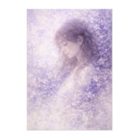 ポスター - B2この商品はpixivFACTORYで作られた商品です。サンプル画像は完成イメージのため、実物と異なる場合があります。 淡いラベンダーカラーの花々に包まれ、 静かにうつむく女性を描いた幻想的なアートポスターです。 やわらかな光と滲むような質感が、 心の奥にある静けさや距離感を穏やかに表現しています。 落ち着いた空間や寝室、読書スペースなどに自然に溶け込む一枚です。