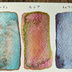 テーマ『架空の鉱物』 こんな色合いの鉱物があったらいいな、をテーマに制作した分離色です。 第2弾になります。 ムーナン 月夢石 くすんだ紫色から青色と彩度の高いピンク色、ほんのりと赤色や黄色が分離します。 エルディ 炎水石 暗緑色から彩度の高い水色と彩度の低いレッドオレンジがやわらかく分離します。 ※コバルト系顔料が含まれております。 ルニア 月雷石 焦げ茶色からピンク色と彩度の高いピンク色と黄色、青みがかかった緑色がほんのりと分離します。 ※コバルト系顔料が含まれております。 トゥフカ 灰雪石 濃いめの灰色から彩度の低い水色と黒色、彩度の高いピンク色がほんのりと分離します。 ※コバルト系顔料が含まれております。 スピラ 遊空石 濃いめの灰色から青色と水色、ペールピンクがやわらかく分離します。 ※コバルト系顔料が含まれております。