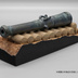 徳川家康のカルヴァリン砲 砲全長約12cm(1/28)。俵を積み重ねた砲架と砲身1本のセットです。 大坂の陣で徳川軍が用いた英国製カルヴァリン砲を再現したキットです。 文献、資料、ドラマ、映画によって形状や設置方法に違いがございますが俵で発射角度を固定、射出時の反動制御を考慮したといわれる形状を再現したモデルになります。(参考・大坂の陣図絵巻) UVレジン(色:スペースグレイ)使用。 背面、砲身下部は出力時に同時生成されるサポートの痕がございますので表面処理等おこなってください。(サポートは除去済です) ※出力完了次第在庫入れていきますのでご要用の方は 入荷待ちメールを設定していただけると幸いです。 ※出力品の微調整、梱包材、梱包方法、インストの追加や説明文の改訂など予告なく行う場合がございます。予めご了承ください。