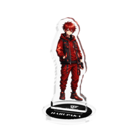 アクリルフィギュア - 50x50mmHARUPAKA選手の立ち絵を使用し、 Target e-sportsの“現在”を象徴するブラック×グレーの台座を採用したアクリルスタンドです。 キャラクターのイメージカラーである“赤”をアクセントとして取り入れ、 静と動、冷静さと情熱を併せ持つデザインに仕上げました。 落ち着いた黒と灰色の台座が、競技シーンを思わせる緊張感とプロフェッショナルな雰囲気を演出。 そこに赤の差し色が加わることで、HARUPAKA選手らしい攻撃性と存在感が際立ちます。 クリアなアクリル素材によって、立ち絵のシルエットや細部まで美しく表現され、 デスクや棚に飾るだけで、空間を引き締める存在感を放ちます。 イベント・大会・オフ会での使用はもちろん、 シリーズで揃えても統一感のある、コレクションアイテムとしてもおすすめの一品です。