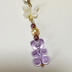 淡い紫色のくまモチーフが主役のチャーム。 透明感のある樹脂素材が、やわらかな光を含んで揺れます。 上部にはパール調ビーズと落ち着いたブラウンビーズを合わせ、 可愛らしさの中に少し大人びた印象を添えました。 白蝶モチーフが全体をまとめ、 甘さを抑えた上品な雰囲気に仕上がっています。 バッグや鍵元に付けるだけで、 さりげなく個性が覗く一点です。 ⸻ 【仕様】 ・カラー:パープル/ゴールド/ブラウン ・モチーフ:くま・蝶 ・金具:キーホルダー金具 【ご注意】 ・ハンドメイド作品のため、色味や配置に個体差があります。 ・樹脂パーツは強い衝撃で傷が付く場合があります。 ・金属部分は金属アレルギー非対応です。