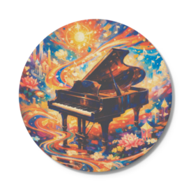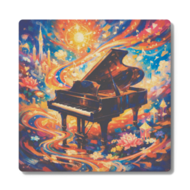 コースター - 円形グランドピアノをモチーフにした、アーティスティックなデザインのコースターです。 ピアノや音楽が好きな方におすすめ。 デスクやティータイムに、さりげなく音楽モチーフを取り入れてみませんか? インテリアとしても映える、音楽好きのためのアイテムです。 (デザインはAIによる生成画像です。) この商品はpixivFACTORYで作られた商品です。サンプル画像は完成イメージのため、実物と異なる場合があります。