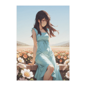 ポスター - B2この商品はpixivFACTORYで作られた商品です。サンプル画像は完成イメージのため、実物と異なる場合があります。 やわらかな青空の下、花畑の縁に腰かけて静かに風を感じる少女。 水色のワンピースと春夏の花々が、部屋に明るい透明感を運びます。 インテリアに馴染む、爽やかで優しい雰囲気のポスターです。