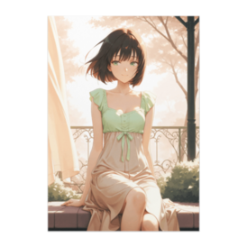 ポスター - B2この商品はpixivFACTORYで作られた商品です。サンプル画像は完成イメージのため、実物と異なる場合があります。 白いカーテン越しの光に包まれたバルコニーで、ふわりと微笑む少女。 ミントグリーンのトップスと柔らかな白いワンピースが、清潔感と温もりを演出します。 明るく優しい空気感を飾れる、ナチュラルな一枚です。