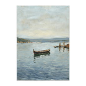 ポスター - B2この商品はpixivFACTORYで作られた商品です。サンプル画像は完成イメージのため、実物と異なる場合があります。 穏やかな湖面に一艘の小舟が浮かぶ情景を描いた、油絵風のイラストポスターです。 やわらかな空の色と静かな水の揺らぎが、時間がゆっくりと流れる感覚を伝えます。 余白を大切にした構図と落ち着いた色合いが、 リビングや書斎、寝室など、心を整えたい空間にやさしくなじみます。