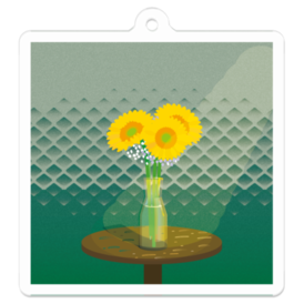 アクリルキーホルダー - 50 x 50 (mm)花瓶に入れられたひまわりののイラストのアクリルキーホルダーです。 【仕様】 材質:アクリル 付属チェーン:ナスカン 印刷方式:UVインクジェット印刷 ※この商品はpixivFACTORYで作られた商品です。サンプル画像は完成イメージのため、実物と異なる場合があります。