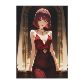 ポスター - B2この商品はpixivFACTORYで作られた商品です。サンプル画像は完成イメージのため、実物と異なる場合があります。 深紅のイブニングドレスに身を包んだ、洗練された大人の女性を描いたエレガントなポスターです。 クラシカルな空間と落ち着いた色彩が、気品と静かな華やかさを引き立てます。 インテリアとしても映える、上質で落ち着いた一枚です。