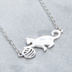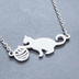 ステンレス製 シルバーカラー 球にじゃれるシルエット猫モチーフのネックレス アジャスター可