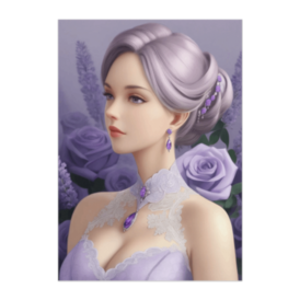ポスター - B2この商品はpixivFACTORYで作られた商品です。サンプル画像は完成イメージのため、実物と異なる場合があります。 ラベンダーカラーの薔薇に囲まれた、穏やかな表情の成人女性を描いたポスターです。 柔らかな色彩と上品な装いが、静けさと落ち着きを感じさせます。 空間に優しい雰囲気をもたらす、鑑賞用アートとしておすすめの一枚です。