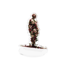アクリルフィギュア - 100x100mm花を素材として構成した、立体的なフローラルフィギュアです。 人の輪郭をなぞるように花を重ね、装飾性と静けさのバランスを意識して制作しています。 キャラクター性は持たせず、空間に置かれるオブジェとして成立することを目指しています。 椿の端正な花姿をもとに、静かで落ち着いた構成にしています。 和の空気感を感じさせる、控えめな存在感の一点です。 素材:アクリル サイズ:高さ約100mm 仕様:台座付きアクリルスタンド 製造:pixiv FACTORY この商品はpixivFACTORYで作られた商品です。サンプル画像は完成イメージのため、実物と異なる場合があります。