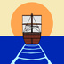 朝日に向かって船が旅立つアニメーションGIFになります。