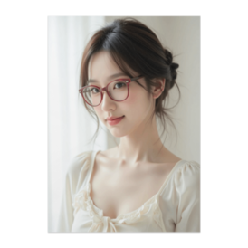 ポスター - B2この商品はpixivFACTORYで作られた商品です。サンプル画像は完成イメージのため、実物と異なる場合があります。 赤縁メガネとまとめ髪のシニョンが印象的な、 やさしく知的な雰囲気の女性を描いた作品です。 自然光に照らされた白い室内空間が、清楚で落ち着いた空気感を演出します。 見る人に安心感を与える、控えめで上品なポートレートです。
