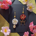 【和風】梅結びと狐面&鳥居のピアス(イヤリング)(色オーダー可)【着物】【袴】【和装】【和ゴス】【お稲荷さん】