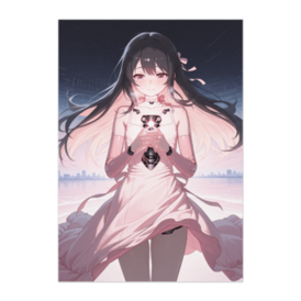 ポスター - B2この商品はpixivFACTORYで作られた商品です。サンプル画像は完成イメージのため、実物と異なる場合があります。 淡いピンクのドレスに身を包み、胸部の発光コアを両手で包み込むサイボーグの少女。 夜空と水辺の都市風景の中で、機械的な構造と穏やかな表情が静かに共存しています。 感情を抑えた佇まいとやわらかな光が印象的な、近未来アートポスターです。