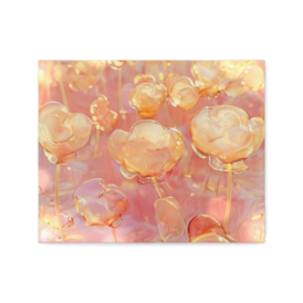 キャンバス - F3※この商品はpixivFACTORYで作られた商品です。サンプル画像は完成イメージのため、実物と異なる場合があります。 「どこにもない、けれど懐かしくて心が落ち着く場所」をテーマにした架空の花々。 伝統的な飴細工(Amezaiku)が持つ、ぷっくりとした厚みと、レンズのように澄み切った透明感をキャンバスの中に閉じ込めました。 氷のような冷たさではなく、水飴を練り上げた時のような温かな艶。 花びらの奥からぽわんと滲み出すのは、瑠璃色、琥珀色、そして翡翠色の安らぎの光です。