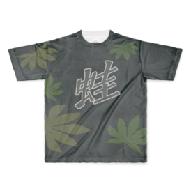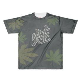 フルグラフィックTシャツ - L - 両面印刷限定100枚のオリジナル蛙Tシャツです。 人気クリエイターライドレックスが冬休み返上で作り上げたおしゃれなデザイン。表面に蛙の漢字が描かれ、背面には蛙の左目が描かれています。文字も手描きです。自然を愛するあなたにピッタリ。刺さる人には刺さりまくること間違いなし。キャンプや釣りなどのアウトドアから日常使いまで、速乾性のポリエステル素材で快適に過ごせます。地の色は画像では深緑に見えていますが実際には黒です。 サイズは4種類(S, M,L, XL)から選んでください。 この商品はpixivFACTORYで作られた商品です。サンプル画像は完成イメージのため、実物と異なる場合があります。