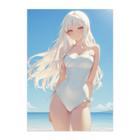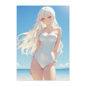 ポスター - B2この商品はpixivFACTORYで作られた商品です。サンプル画像は完成イメージのため、実物と異なる場合があります。 青い海と空に包まれたビーチで、 白いワンピース水着を纏った女性が静かに佇む一枚。 柔らかな日差しと風になびく髪が、 夏の透明感と穏やかな時間を感じさせます。 インテリアや鑑賞用として、 上品で爽やかな雰囲気を楽しめるアートポスターです。