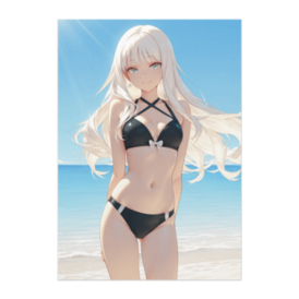 ポスター - B2この商品はpixivFACTORYで作られた商品です。サンプル画像は完成イメージのため、実物と異なる場合があります。 澄んだ青空と穏やかな海を背景に、 黒のビキニを纏った女性を描いたサマーアート。 シンプルな配色と自然な佇まいが、 大人っぽく落ち着いた夏の雰囲気を演出します。 空間を選ばず飾れる、 洗練されたビーチイラストです。