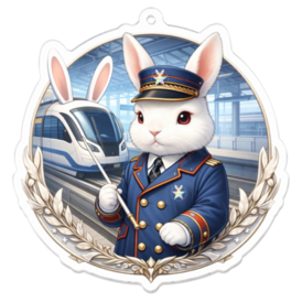 アクリルキーホルダー - 70 x 70 (mm)うさ瓶ランド国営モノレールのマスコットキャラクター"ぴょん速くん"と高速モノレール"ピョン速号"のアクリルキーホルダー エンブレムデザインでちょっとかっこいい仕様にしてみました ・サイズは70mm×70mmを目安に作っております (*この商品はpixivFACTORYで作られた商品です。サンプル画像は完成イメージのため、実物と異なる場合があります。)