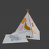 It's just a free tent 3D Assets,Based on a classic triangular pyramid shape, the warm orange canvas paired with rounded artistic patterns retains the atmosphere of an original camping tent while incorporating the soft aesthetics of modern home decor. It's suitable for setting up in the living room, on a terrace, or on a lawn. The lightweight and breathable fabric and sturdy frame combine aesthetics and practicality. With warm lighting and cushions, it can become a fun playroom for children or a quiet corner for adults to relax and unwind, easily creating a safe and secure "camping haven" in the city.