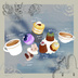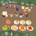 カフェをイメージしたかわいい食べ物や食器のセットです。