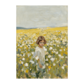 ポスター - B2この商品はpixivFACTORYで作られた商品です。サンプル画像は完成イメージのため、実物と異なる場合があります。 広大な花畑の中に小さく描かれた少女。 自然の広がりと静かな存在感を大切にした、 油絵風の風景アート作品です。 主張しすぎない構図とやわらかな色彩が、 空間に穏やかな余白と奥行きをもたらします。