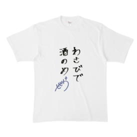 Tシャツ - XL - 白聖々良しきのが手書きした文字を元に作成したTシャツになります。 わさびをつまみに酒を飲みましょう! 「ほろ酔い」にちなんだ撮り下ろし特典ボイスも付いてきます。 この商品はpixivFACTORYで作られた商品です。サンプル画像は完成イメージのため、実物と異なる場合があります。 発送は順次行われます。