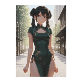 ポスター - B2この商品はpixivFACTORYで作られた商品です。サンプル画像は完成イメージのため、実物と異なる場合があります。 深みのあるグリーンのチャイナドレスが印象的な、 落ち着きと気品を感じさせるポスター作品です。 自然光と街路樹の緑に溶け込むような配色で、 大人びた表情とやわらかな可愛らしさを同時に楽しめます。 静かな存在感を持つ一枚です。