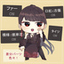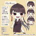 女マフィア(殺し屋)の私服(シャツ)とドレスのSDキャラ(ミニキャラ)の全身立ち絵(顔差分・刺青、刀等オマケパーツ付き付き)