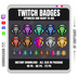 勇気と強さの象徴であるライオンをモチーフにしたサブバッジです。Twitch、Discord、YouTube、TikTok、Kick で使用可能。透明背景の PNG ファイルを即時ダウンロードできます。