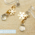 Saison d’Étoile(セゾン・デトワール)シリーズより、 冬の空気と光を閉じ込めたようなイヤリングが登場しました。 雪の結晶モチーフと、雫型のチェコガラスを組み合わせ、 静かな冬景色をイメージして制作しています。 光の当たり方によって表情が変わるガラスは、 シンプルながらも印象的な存在感があります。 ◆ カラーバリエーション • Rosé(ロゼ) • Bleu(ブルー) • Clair(クレール) • Mat Clair(マット・クレール) ※ ガラスパーツには個体差があります。 それぞれの風合いとしてお楽しみください。 ◆ 仕様について • 金具カラー:ゴールドのみ • 樹脂イヤリング仕様 ※ 金具部分は指で広げず、 ドールさんの耳にそっと差し込んで装着してください。 冬の装いにはもちろん、 季節を問わず静かなアクセントとしてお使いいただける一点です。