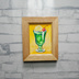 一点物【クリームソーダ】油絵 原画|手のひらサイズのミニ絵画 木製フレーム付