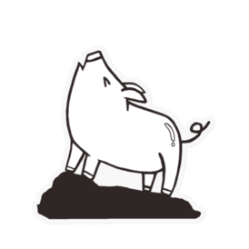 ステッカー - 100 x 100 (mm)この商品はpixivFACTORYで作られた商品です。サンプル画像は完成イメージのため、実物と異なる場合があります。 オオカミに育てられたブタをイメージして作った、無理してオオカミの真似をする可愛らしいブタのステッカーです。